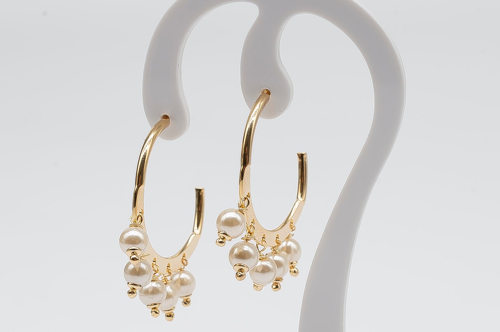 | Brinco Argola com Pérolas, Banhado em Ouro 18K |