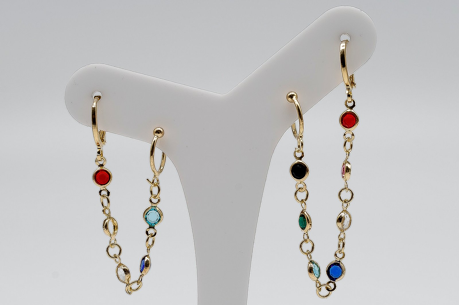 Brinco Ear Cuff Zircônias Coloridas Duplo, Banhado em Ouro 18K