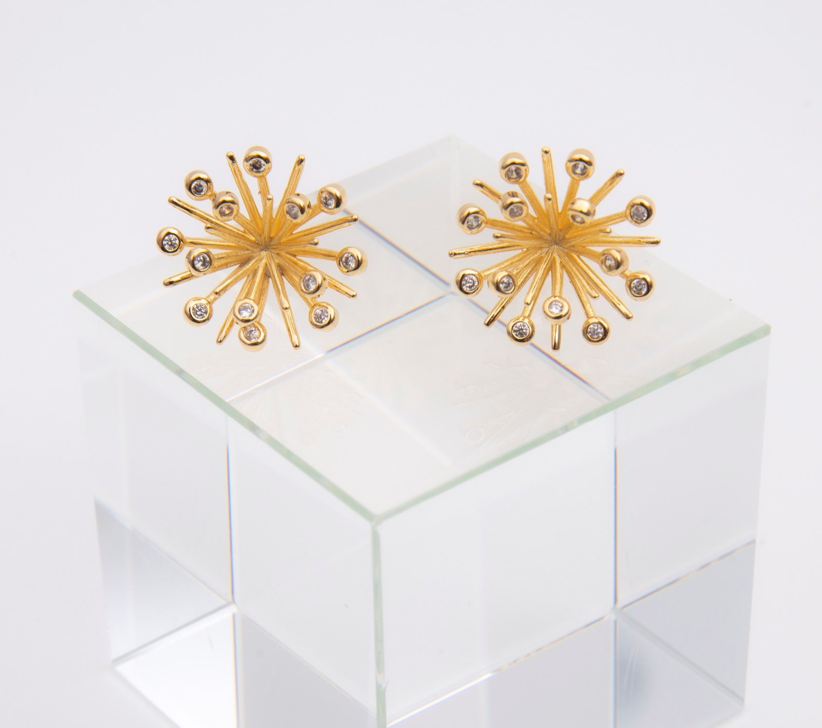 Brinco Explosão 3D com Pontas de Zircônia Cristal, Banhado em Ouro 18K