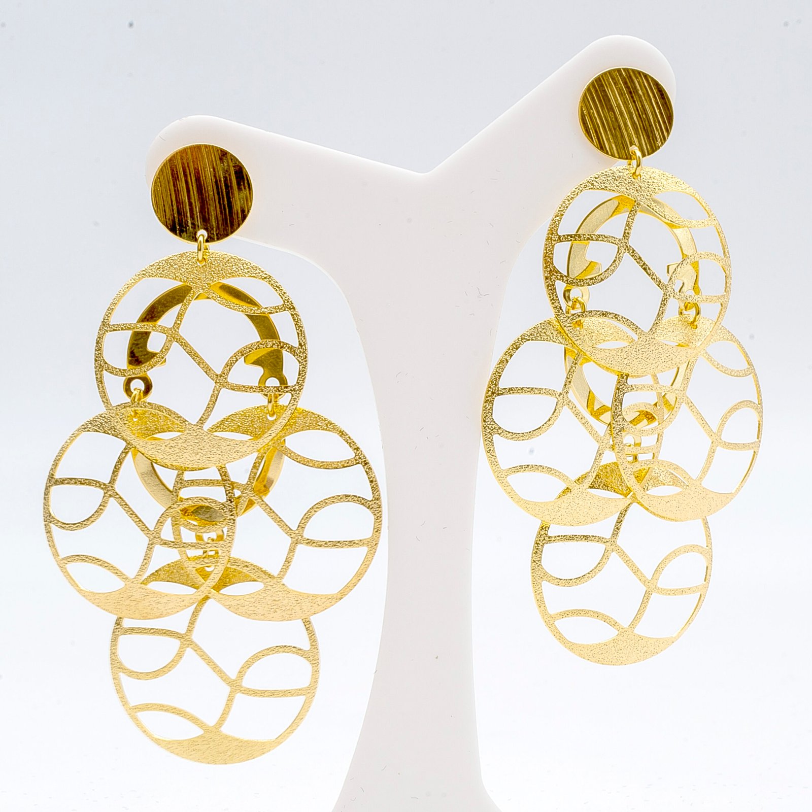 | Brinco Geométrico Círculos Vazado Banhado a Ouro 18k |