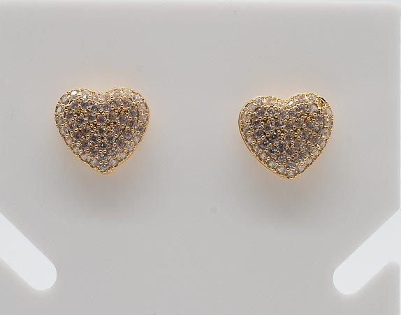 | Brinco Luxo Coração Cravejado, Banhado em Ouro 18K |