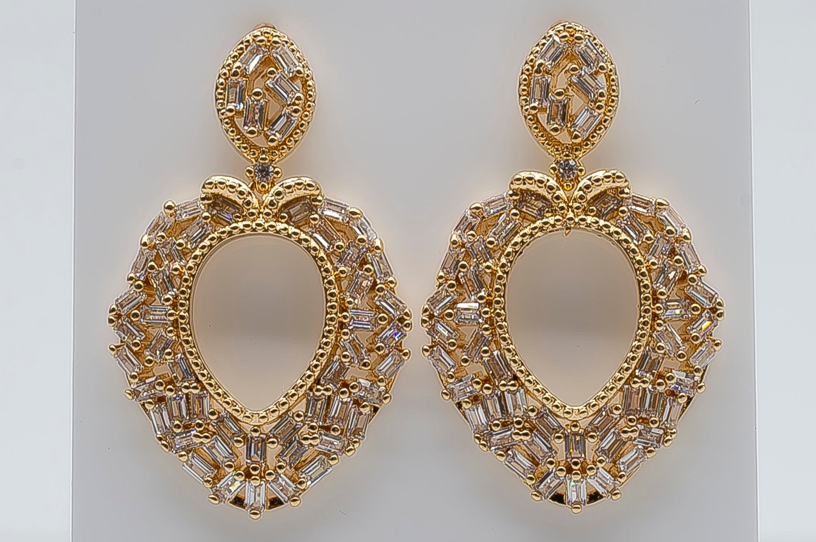 | Brinco Luxo Coração Vazado Cravejado, Banhado em Ouro 18k |