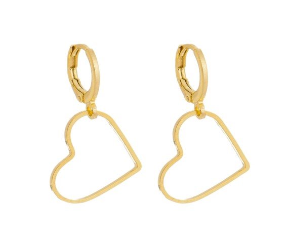 | Brinco Mini Argola com Pingente de Coração Vazado, Banhado em Ouro 18K |