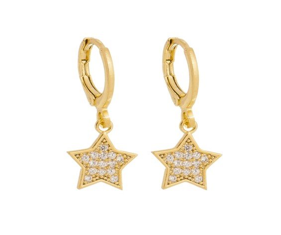 Brinco Mini Argola Estrela Cravejada Banhado em Ouro 18K