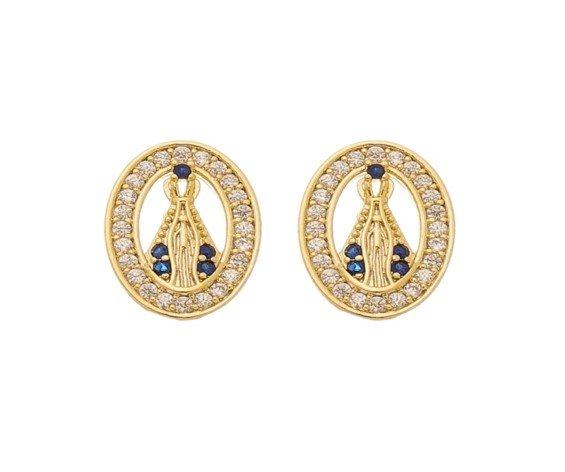 Brinco Oval Santa Cravejada com Micro Zircônias Banhado em Ouro 18K