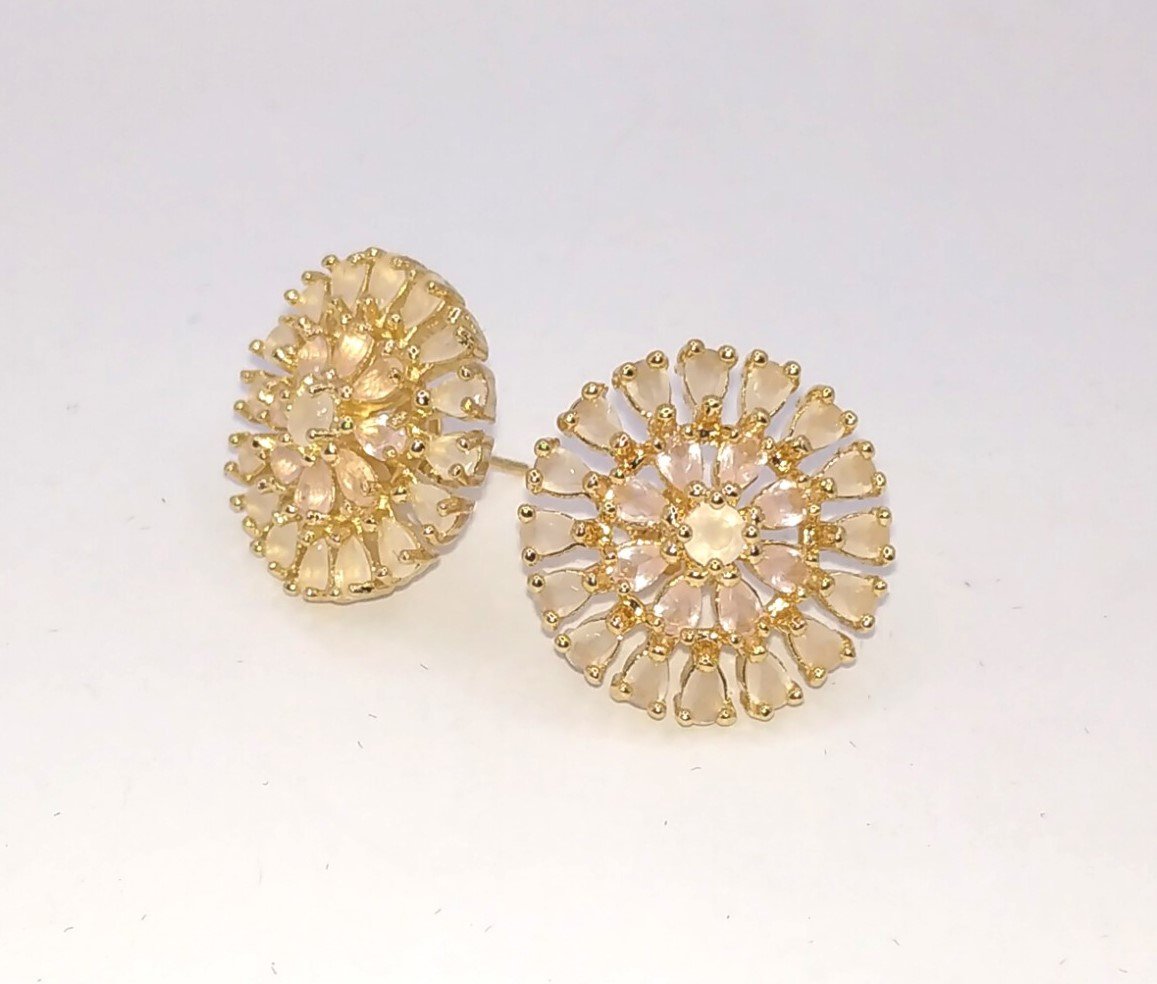 | Brinco Pizza Cravejado Zircônia Branca, Banhado em Ouro 18K |