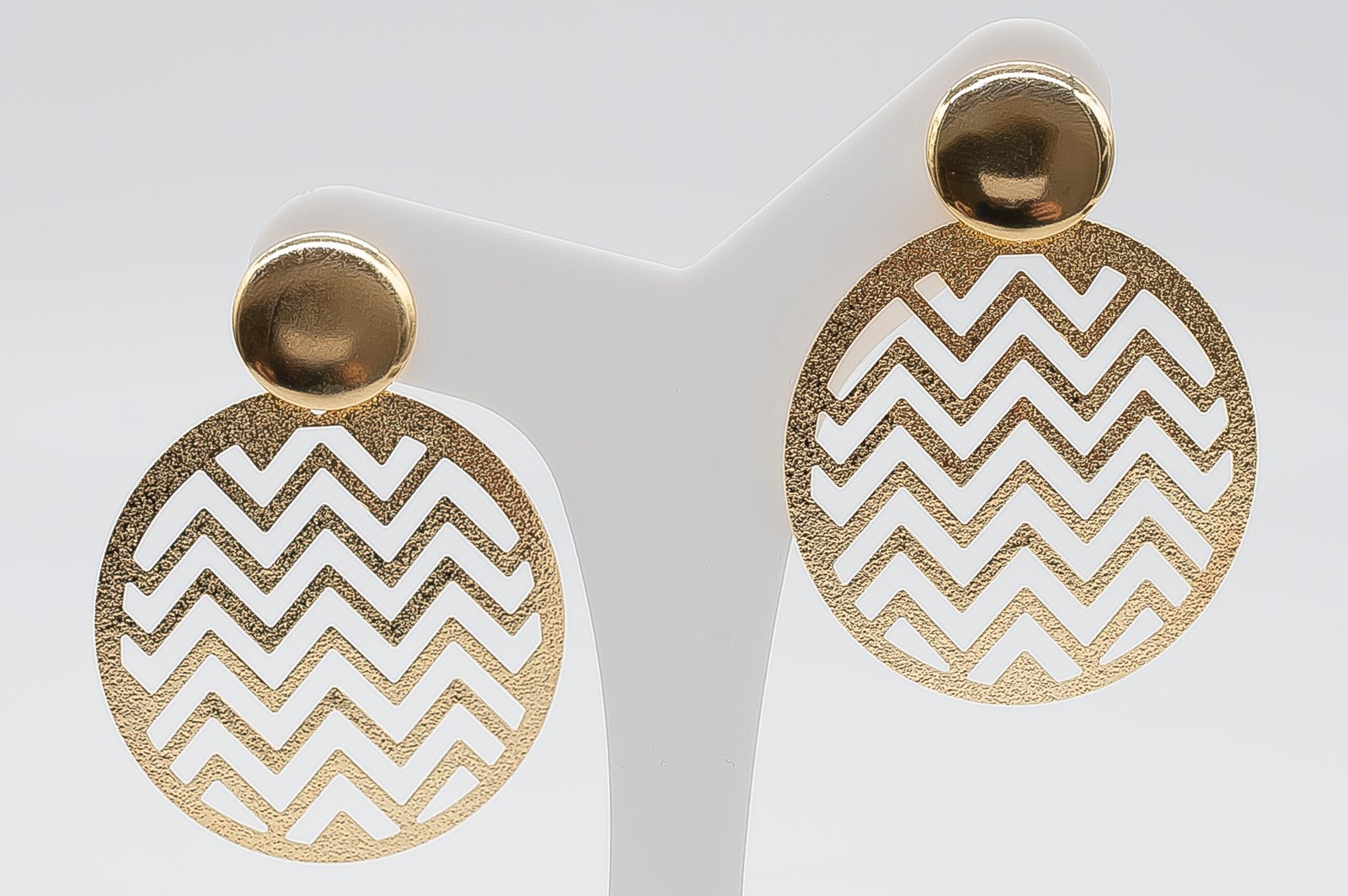 | Brinco Redondo Trabalhado em Ondas Vazadas, Banhado em Ouro 18k |