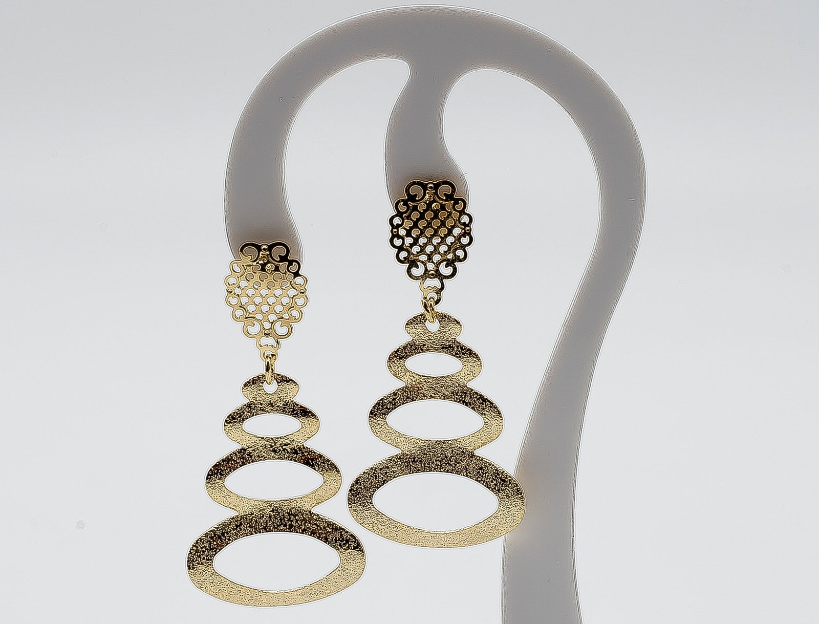 Brinco Trabalhado com Elos Ovais Vazados Banhado em Ouro 18K