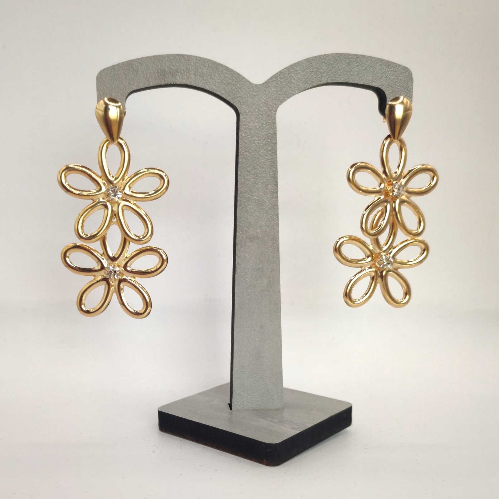 Brinco Trabalhado Flor com Zircônia Cristal, Banhado a Ouro 18k