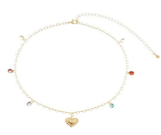 | Choker com Coração e Zircônias Coloridas Penduradas, Banhado em Ouro 18K |