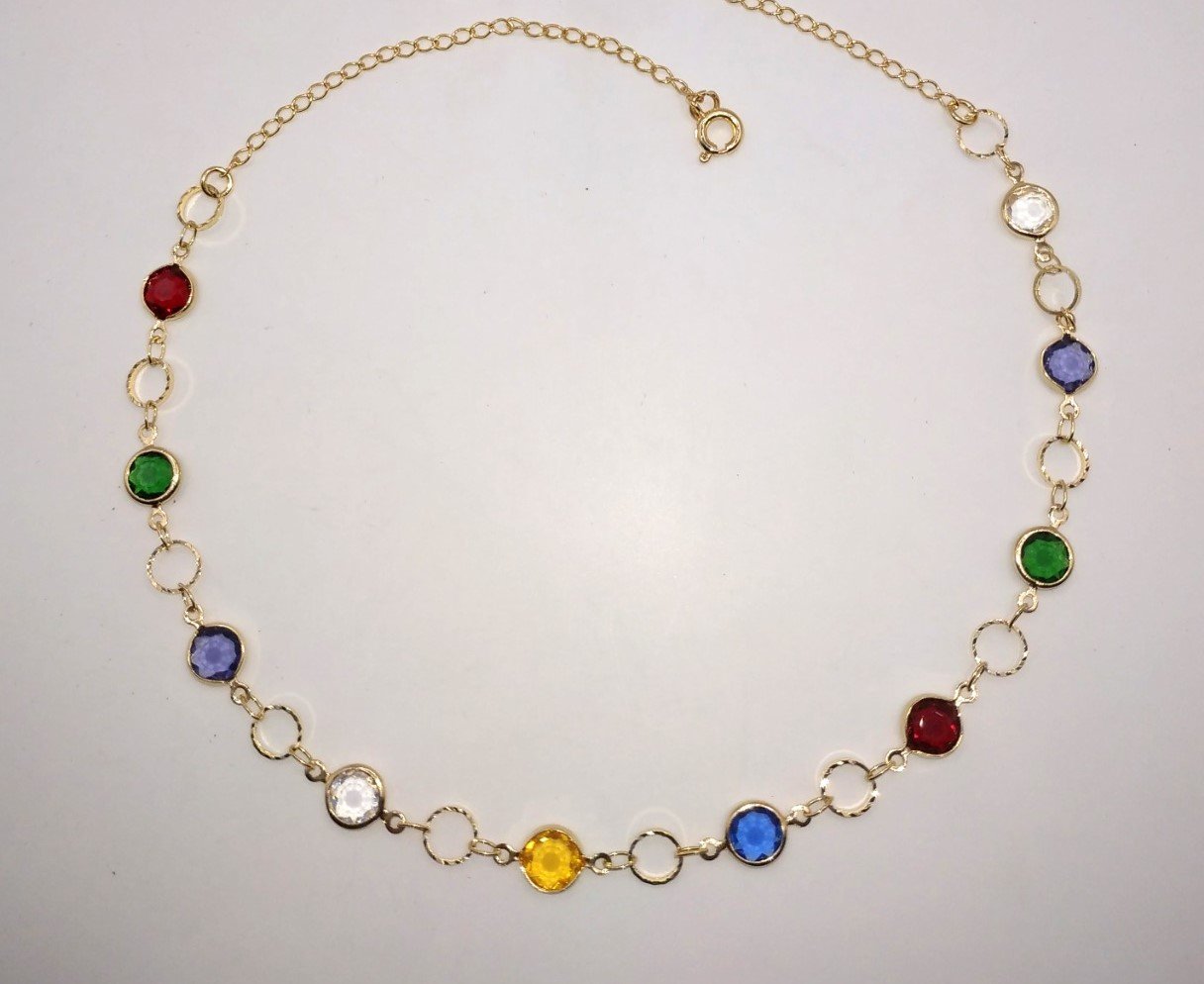 Choker Zircônias Coloridas Intercaladas com Pequenos Círculos Banhado em Ouro 18K