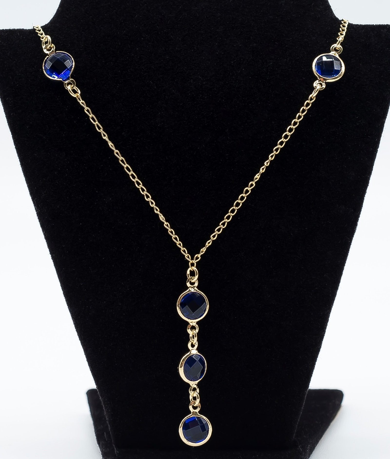 | Colar com Trio de Zircônia Azul Pendurada, Banhado em Ouro 18K |