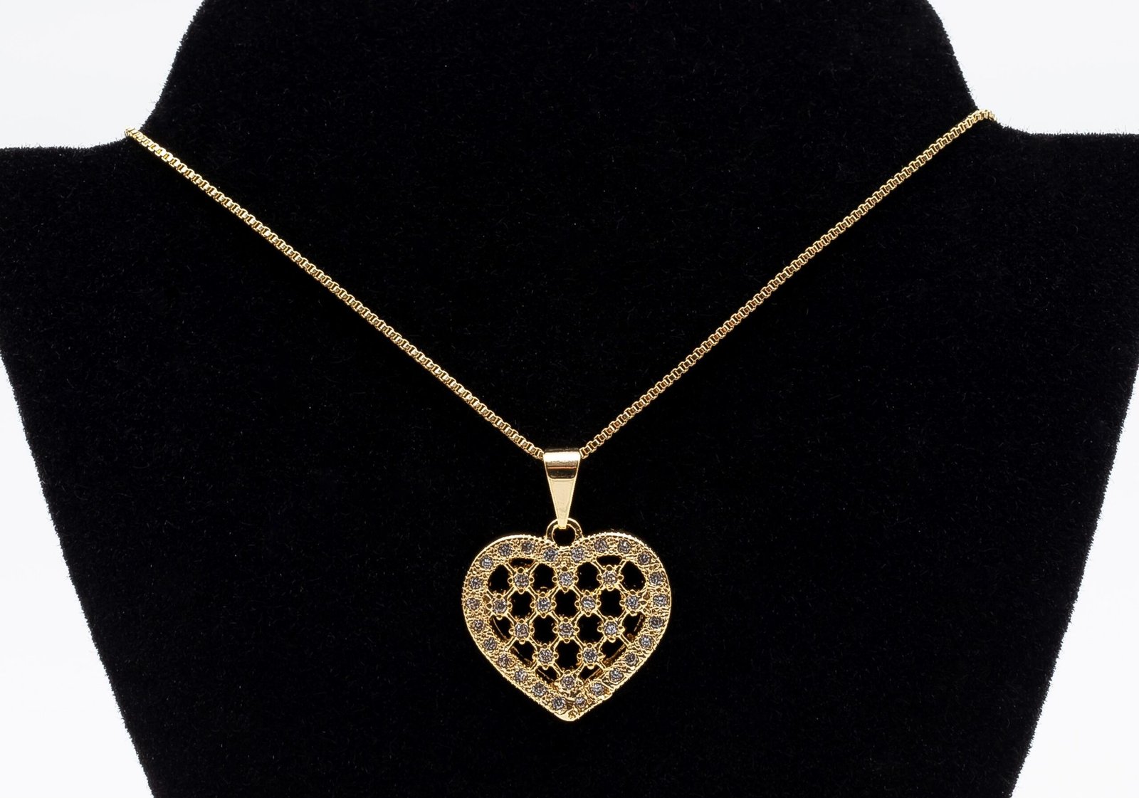 Colar Coração Cravejado com Detalhes Pontos de Luz, Banhado em Ouro 18K