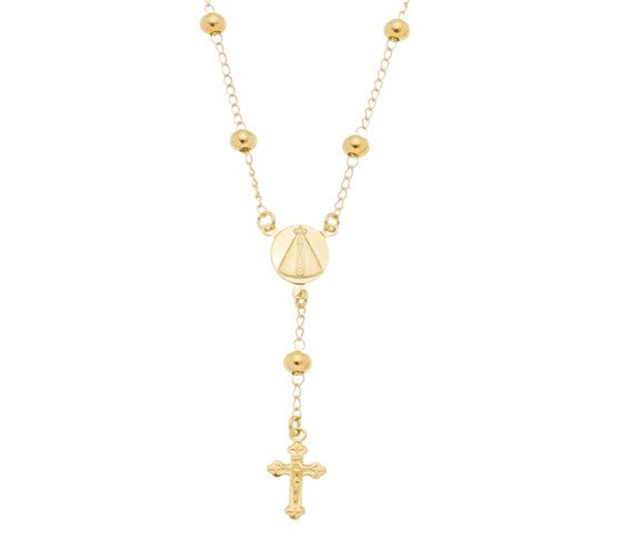 | Colar Corrente com Bolas com Pingente de Santa e Cruz, Banhado em Ouro 18K |
