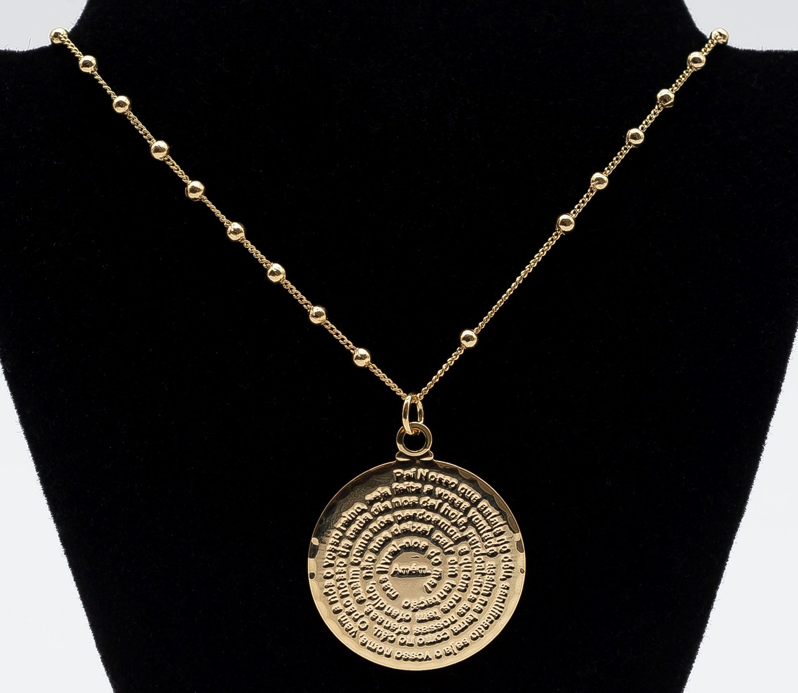 | Colar Corrente Com Bolinhas e Pingente Pai Nosso, Banhado em Ouro 18K |