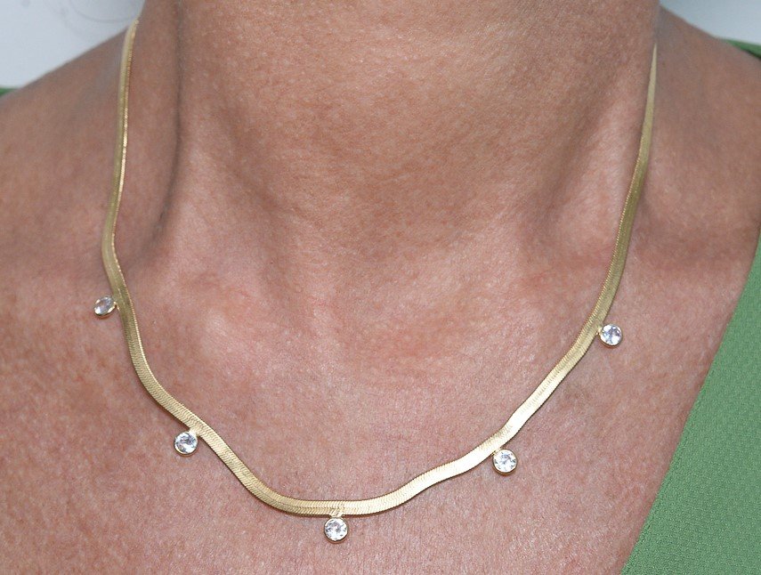 | Colar Corrente Lisa com Zircônias Cristal, Banhada em Ouro 18K |