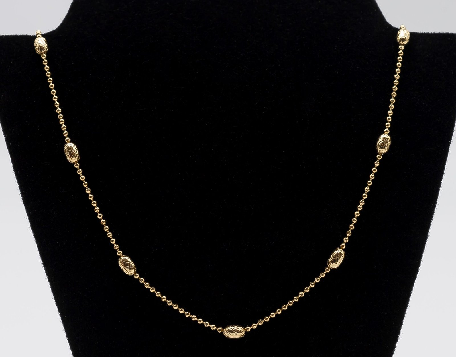 | Colar Longo Bolas Trabalhadas Espaçadas, Banhado em Ouro 18K |