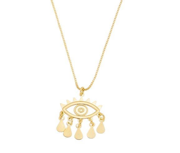 | Colar Olho Grego com Penduricalhos, Banhado em Ouro 18K |