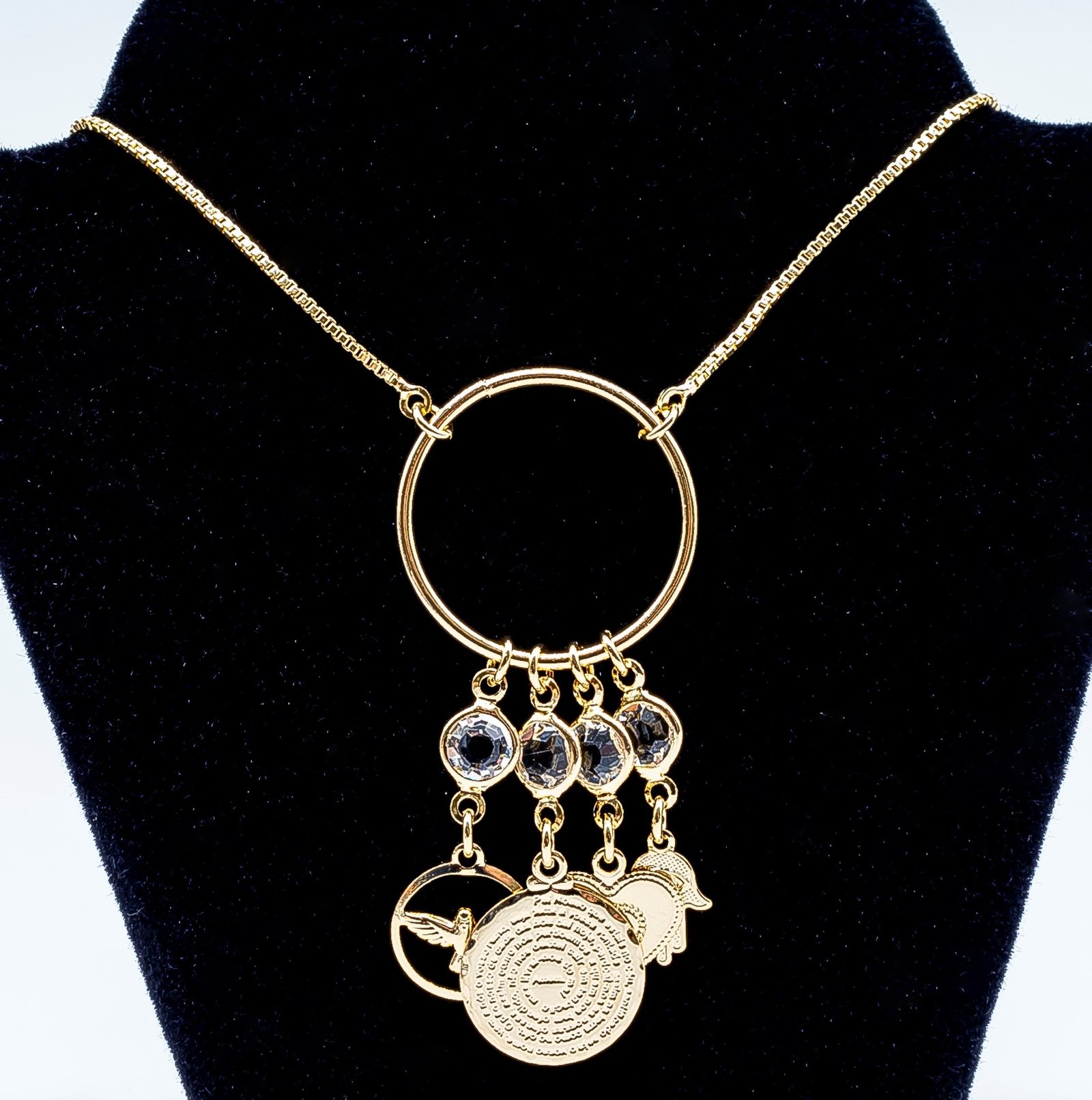 | Colar Pingente Circular com Berloques Religiosos e Zircônias Cristal |