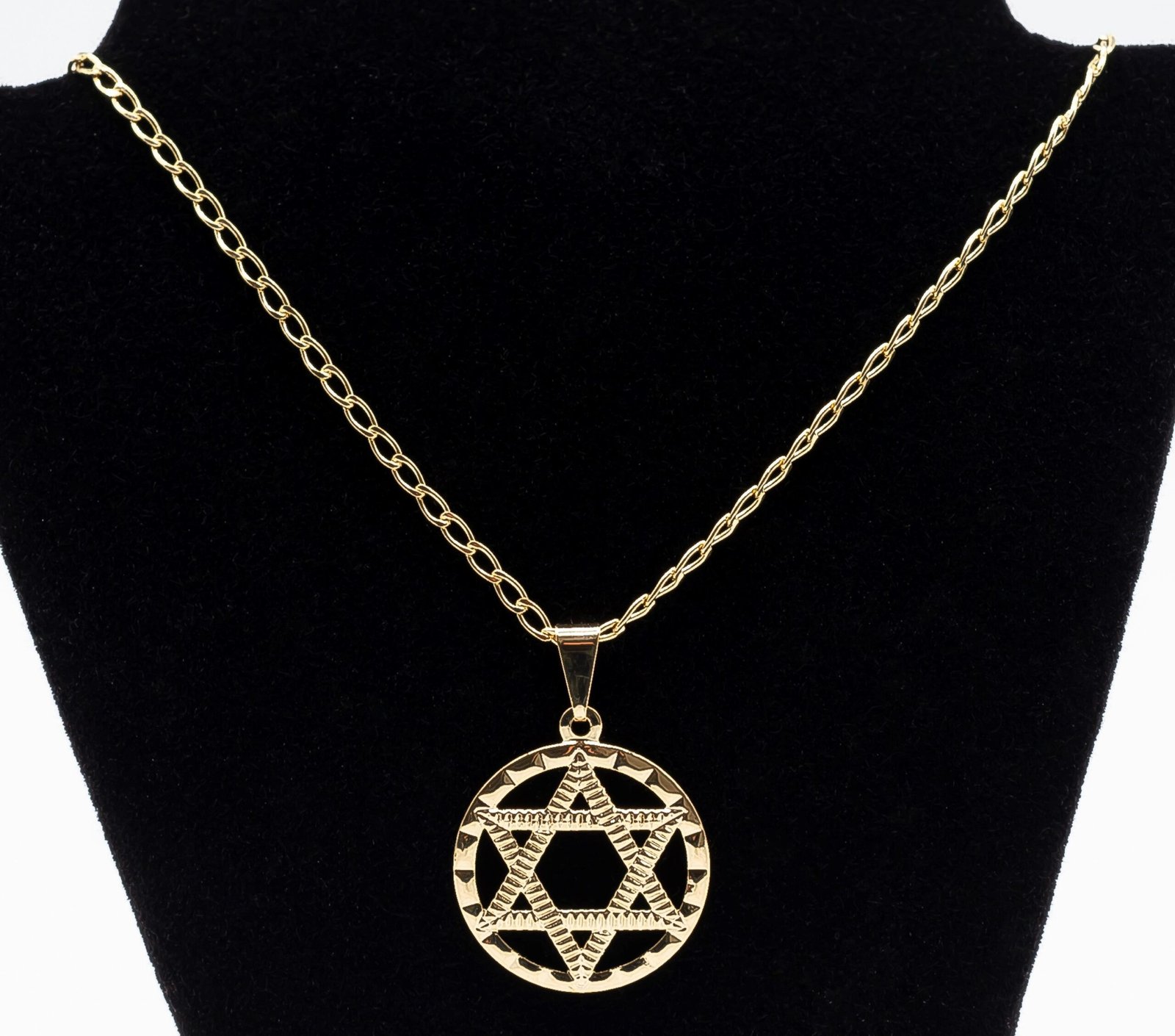 | Colar Pingente Circular Estrela de Davi, Banhado em Ouro 18K |