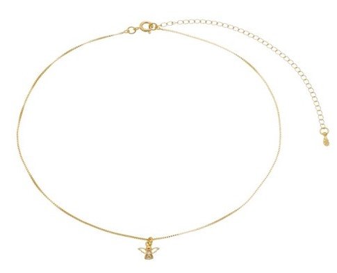 | Colar Pingente de Anjo com Zircônia Cristal, Banhado em Ouro 18K |