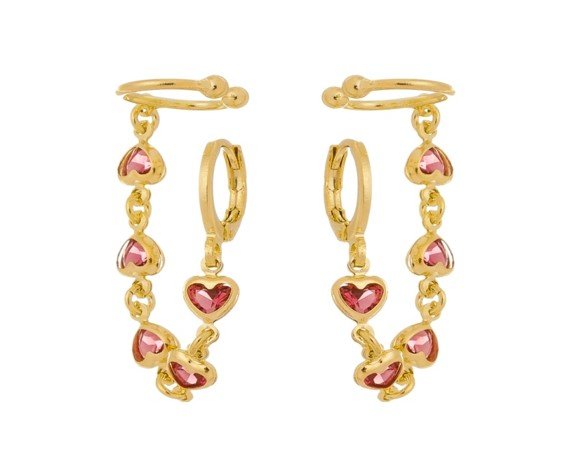 | Ear Cuff Corações Rosas, Banhado em Ouro 18K |