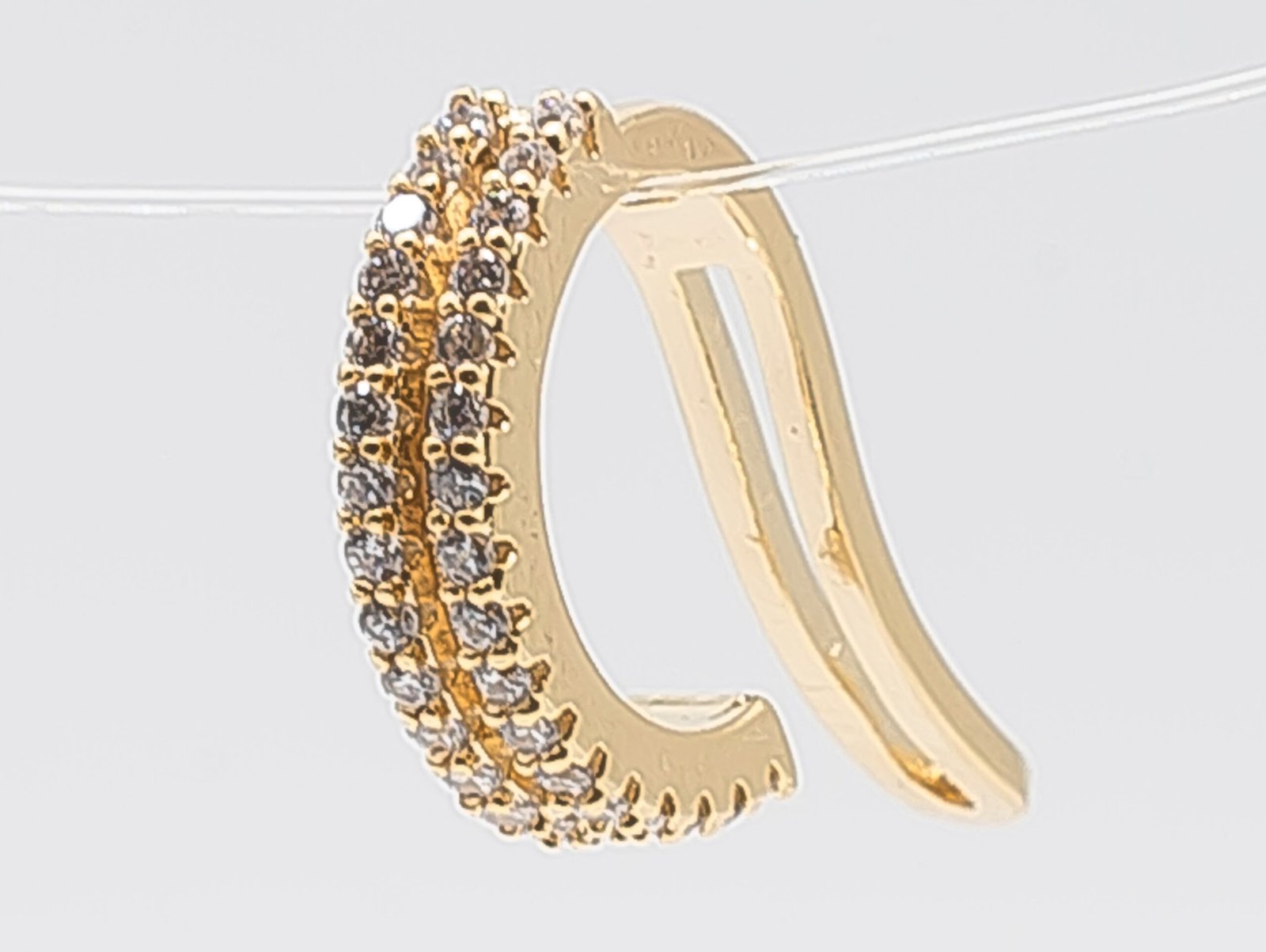 | Piercing Fake com 2 Tiras Cravejadas Zircônia Cristal, Banhado em Ouro 18K |