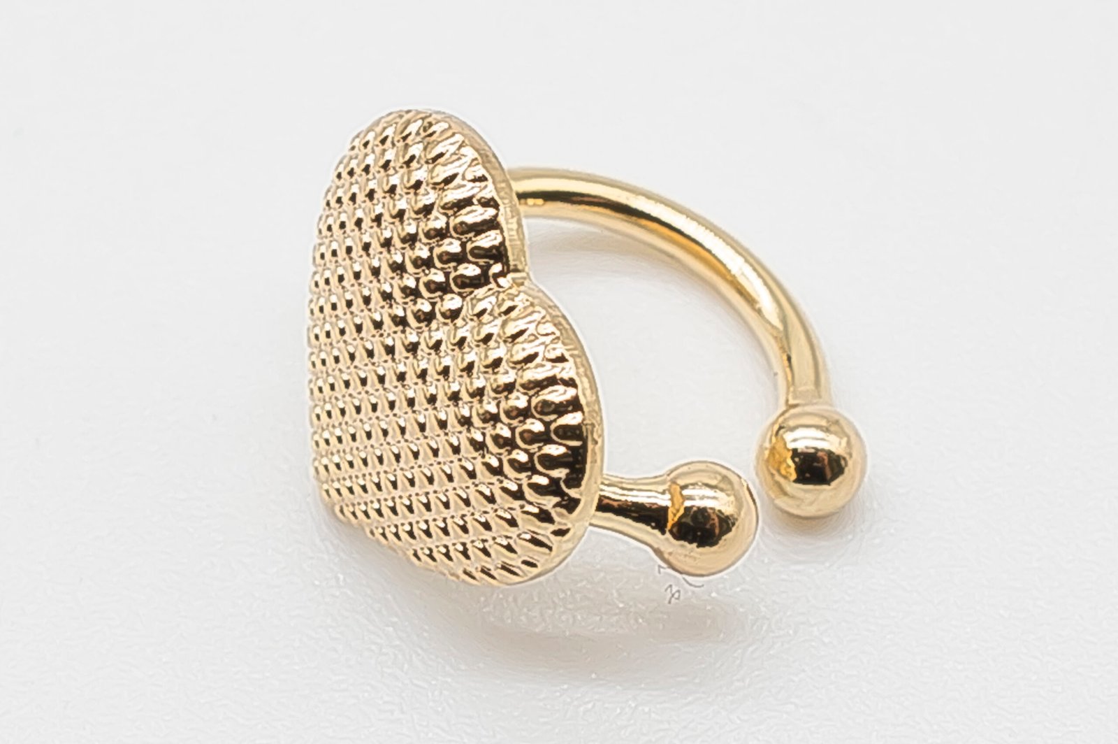 | Piercing Fake Coração Texturizado, Banhado em Ouro 18K |