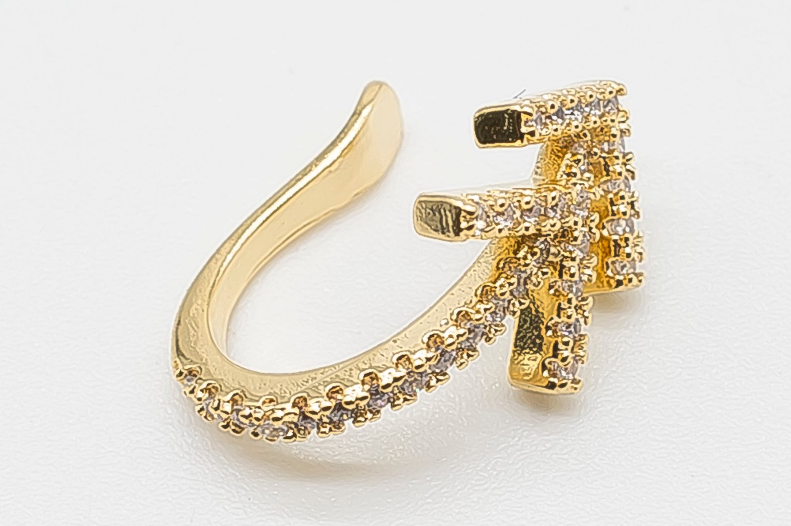 | Piercing Fake Seta Zircônia Cristal, Banhado em Ouro 18K |