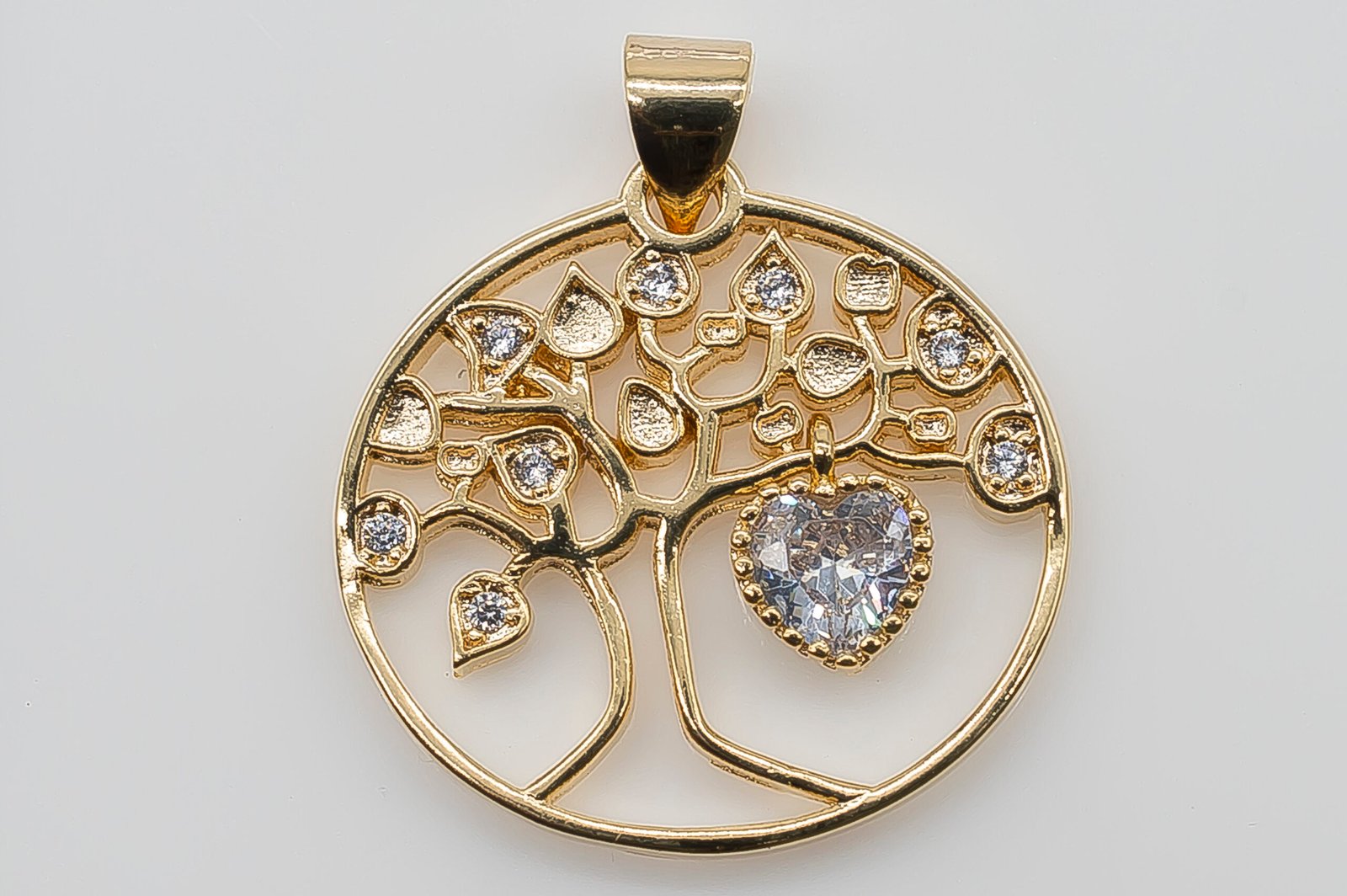Pingente Árvore da Vida com Coração Pendurado, Banhado em Ouro 18K