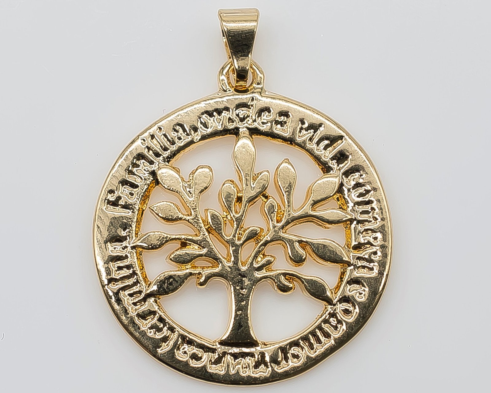 Pingente Árvore da Vida com Círculo com Escritas, Banhado em Ouro 18K
