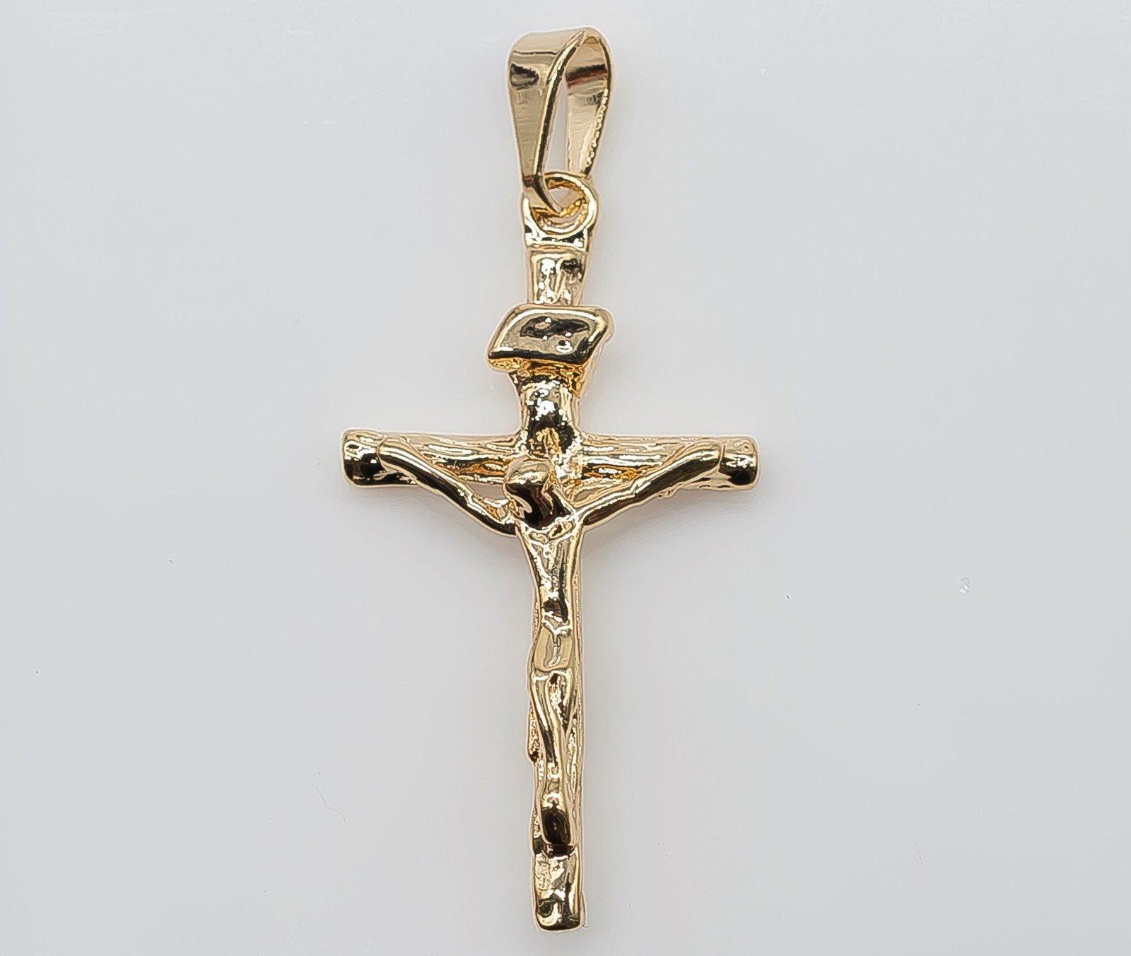 | Pingente Cruz Fina com Cristo, Banhado em Ouro 18K |