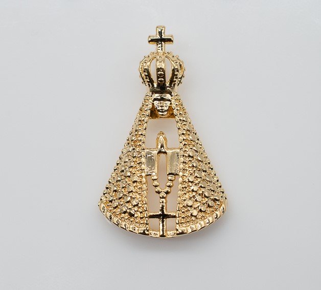 | Pingente Santa com Detalhes em Micro Bolas, Banhado em Ouro 18K |