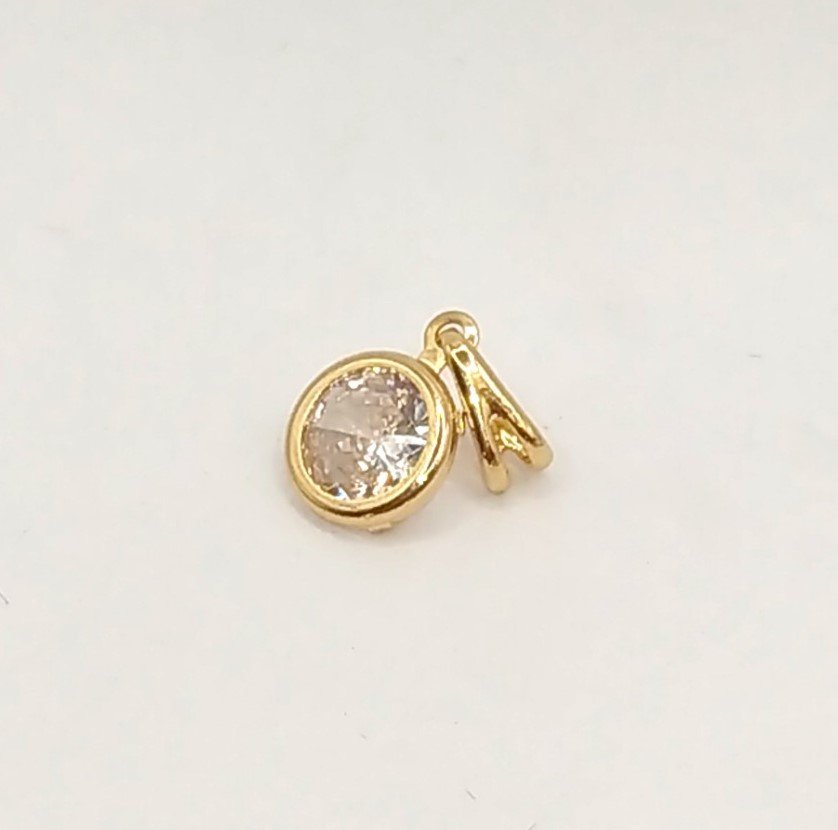 | Pingente Zircônia Cristal Redonda com Borda Banhada em Ouro 18K |