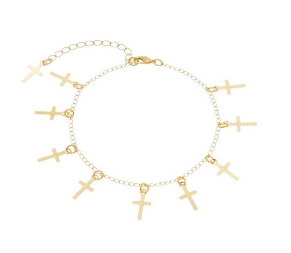 | Pulseira Cruzes Chapadas, Banhada em Ouro 18K |