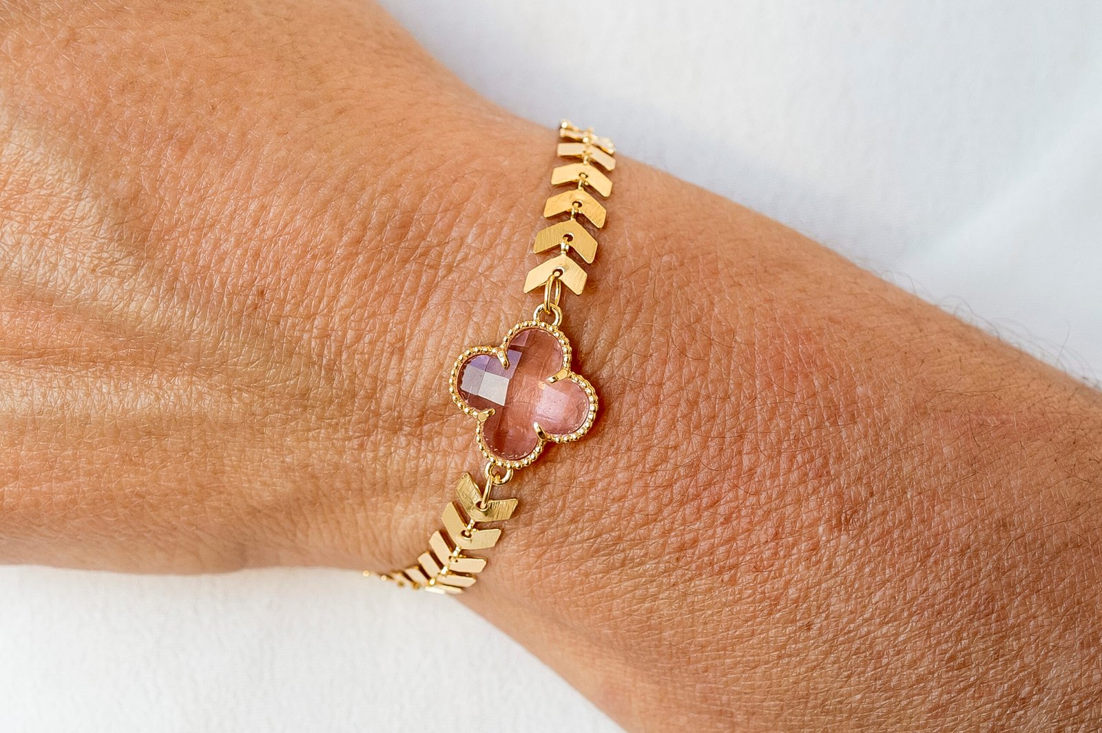 | Pulseira de Setas com Pingente Trevo Cristal, Banhada em Ouro 18K |