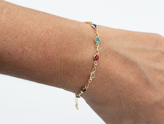 Pulseira Elos Intercalados com Zircônias Pequenas Coloridas Banhada em Ouro 18K