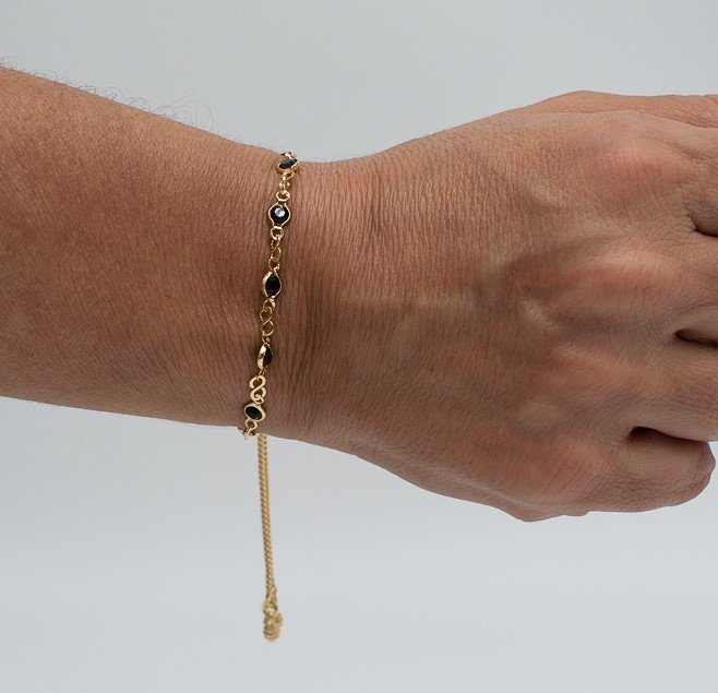 | Pulseira Gravatinha com Zircônias Pretas, Banhada em Ouro 18K |