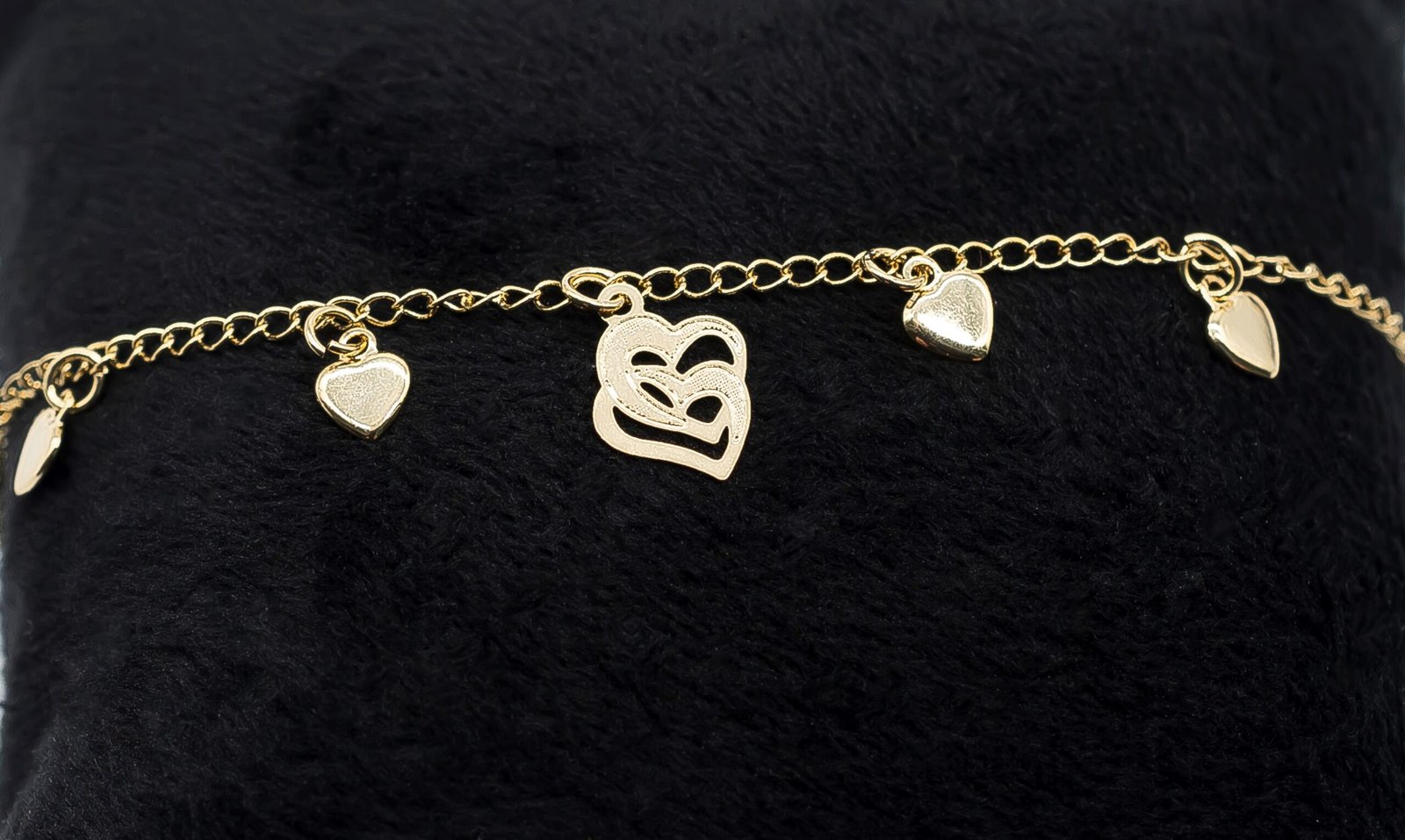 | Pulseira Infantil Corações, Banhada em Ouro 18K |