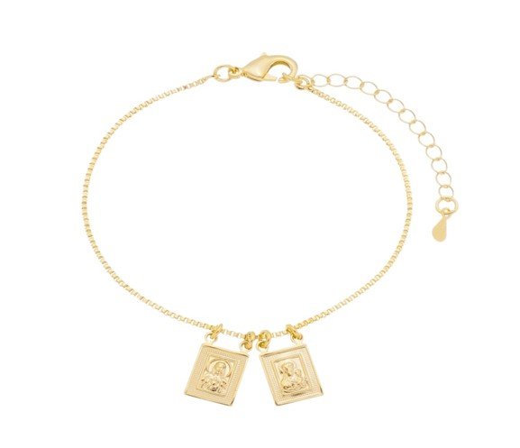 Pulseira Nossa Senhora Do Carmo e o Sagrado Coração de Jesus, Banhada em Ouro 18K