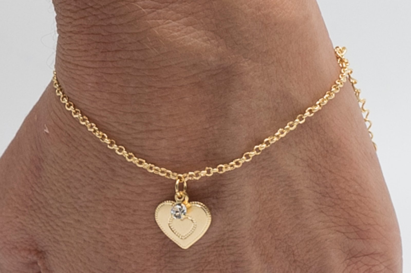| Pulseira Pingente Coração e Ponto de Luz, Banhada em Ouro 18K |