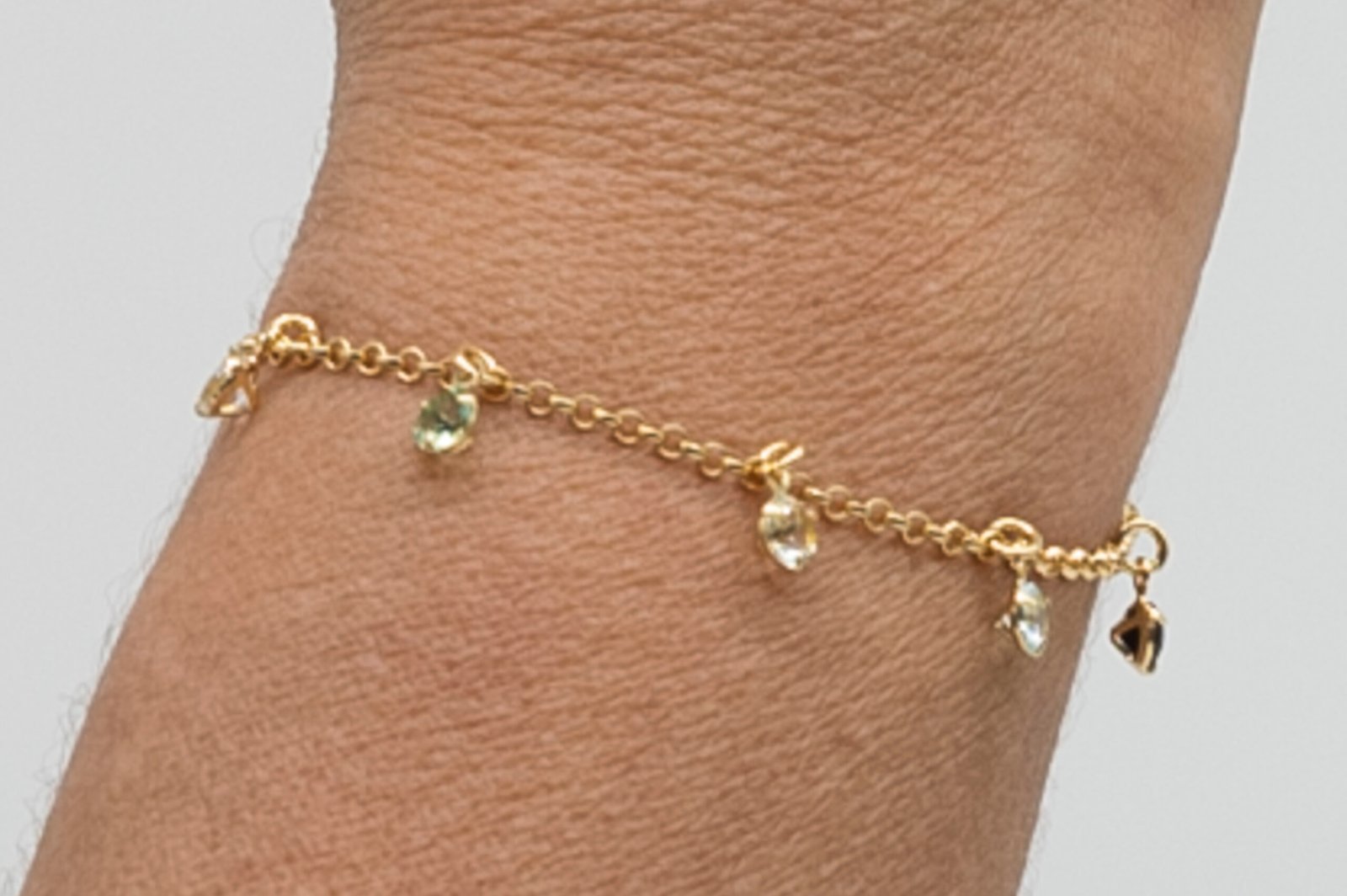 | Pulseira Zircônias Cristal e Preta Penduradas, Banhada em Ouro 18K |